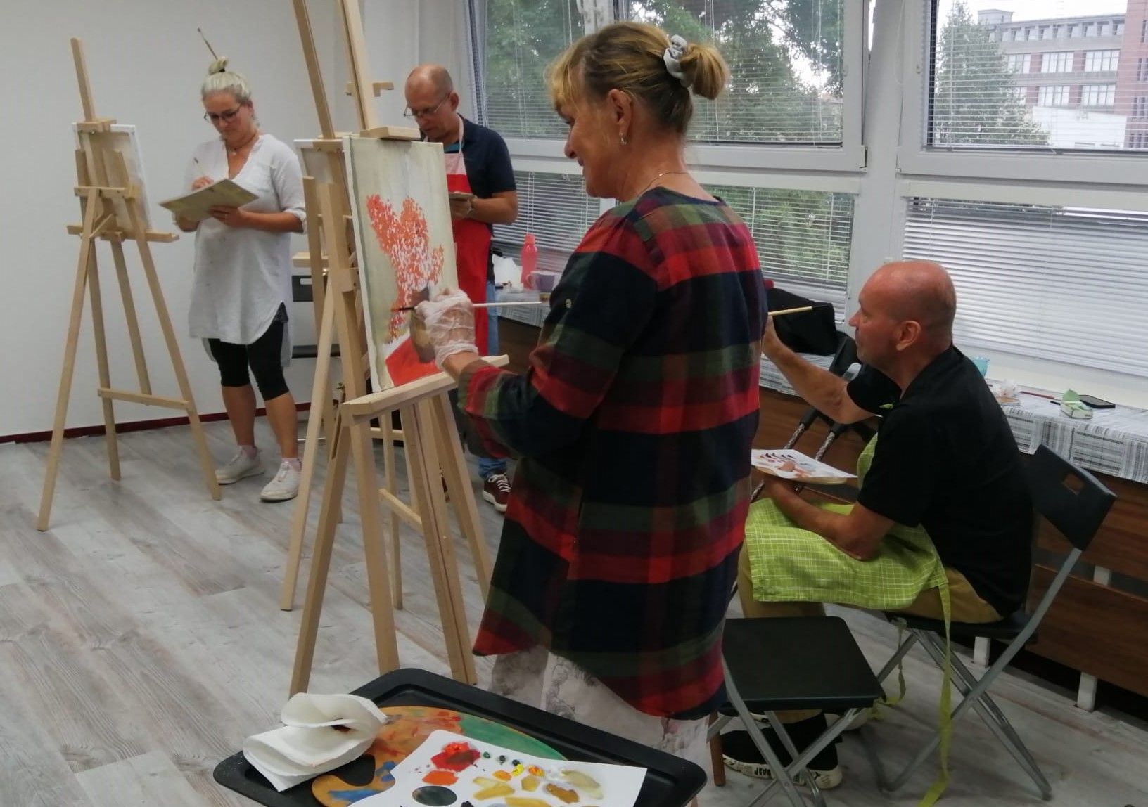 Kurz Malování nejen pro seniory se koná se vždy v pondělí od 14 do 16 hodin a obsahuje 12 dvouhodinových lekcí. Podrobné informace k němu naleznete v sekci Kurzy a workshopy (viz tlačítko níže).